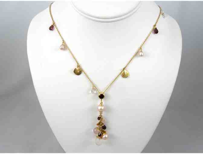 14K yellow gold pearl, garnet & rose quartz necklace donated by Renzulli's Jewelry World