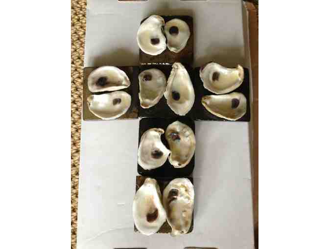 You are bidding on a Oyster Shells on Slate cross by artist Steve Braumer.