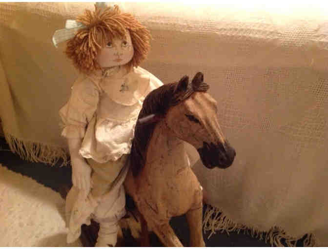(1) Hand Made Doll (1) Reproduction Vintage Rocking Horse