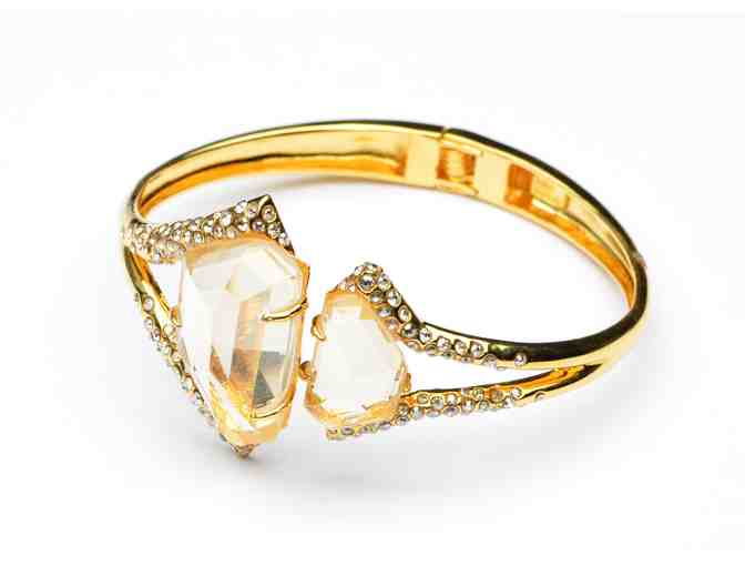 Yellow gold vermeil and citrine "New Wave Hydroqtz" bracelet set with Swarovski Crystals. Approx. 2" long x 1/4" in diameter.