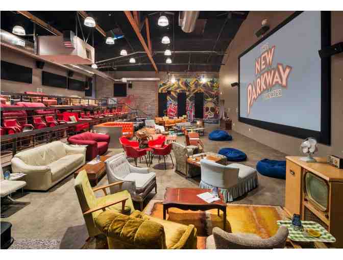 Following in the spirit of the iconic picture pizza pub, the New Parkway Theater is an eclectic movie-going experience where people not only come to watch movies but to have an unforgettable night out with friends and community. Each week, we offer 10-15 different movies over 40+ screenings, yummy comfort food and drink, community-building activities many times a week.