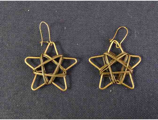 Wire wrapped star shaped earrings. 1 1/2 " across.