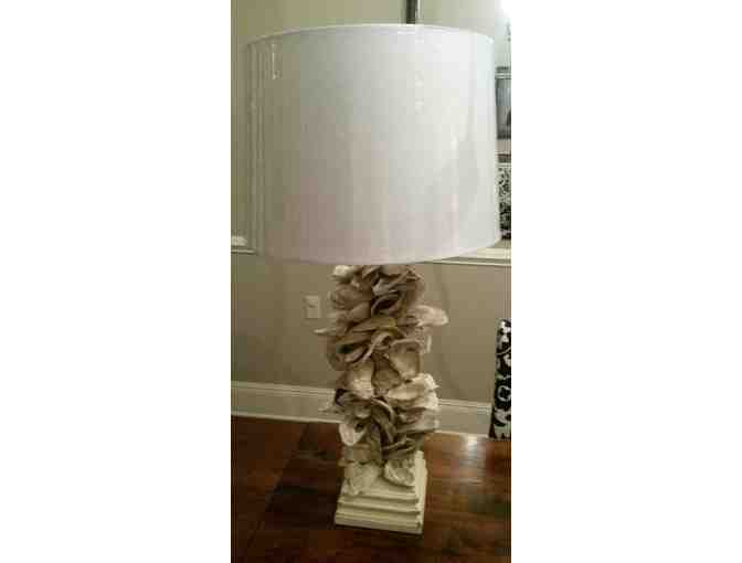 You are bidding on a 20" x 6.35" oyster shell lamp with 13" x 15" x 10" white linen shade.
