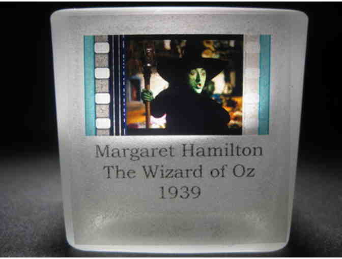 A single frame of film from a Hollywood motion picture is embedded on the side of each frosted candle votive to illuminate the image. Each film cell is unique since each cell only appears 1/24th of a second when projected. This is truly a one-of-a-kind item.