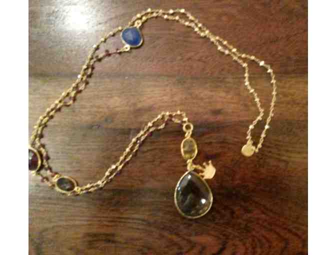 You are bidding on a beautiful Catherine Page long gold necklace with natural stones.