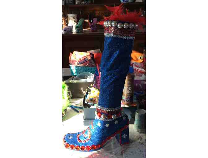 You are bidding on a Red & Blue 4ever Muses Boot! Country Day themed "Muses" Boot. One-of-A-Kind! Perfect for your mantle at Mardi Gras or all year long! This is a stunner!