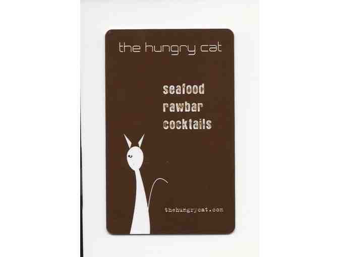 Gift card redeemable at any one of the three locations In Santa Monica, Hollywood, and Santa Barbara. For dinner or weekend brunch. The Hungry Cat dedicates itself to seafood house fare. It offers the highest quality fish and meats matched with Southern California's abundent seasonal produce.The raw bar specializes in formidable seafood platters. Menu is classic and eclectic. Famed for exquisite cocktails made with fresh juices. Don't miss the ultra-rich chocolate bread-and-butter pudding.