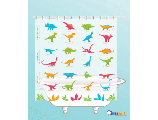 Which dinosaurs are from the Jurassic period? Is a Stegosaurus a plant-eater? Learn about dinosaurs and other prehistoric animals from this fascinating shower curtain. Featuring fun and colorful illustrations, our SMART Dinosaur Shower Curtain is certain to make you smile!