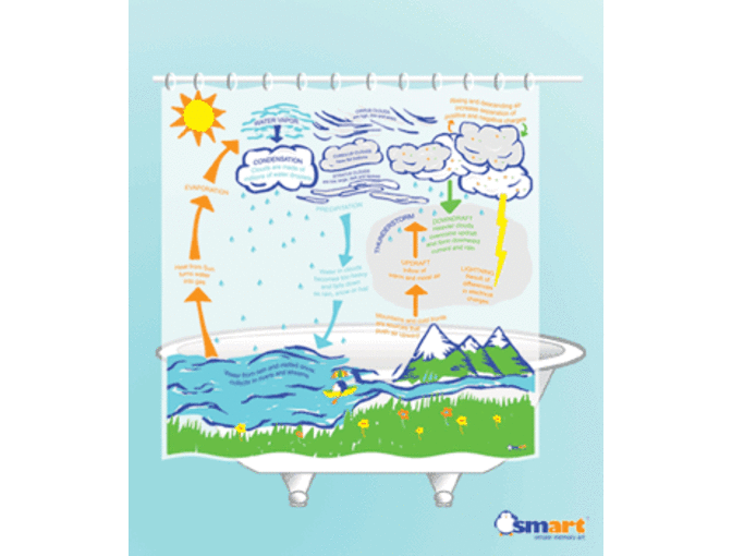 Do you know the weather cycle? Or why there is lightning? Our Weather Shower Curtain will help you learn the basics of the water cycle and other interesting weather facts while you shower or brush your teeth!