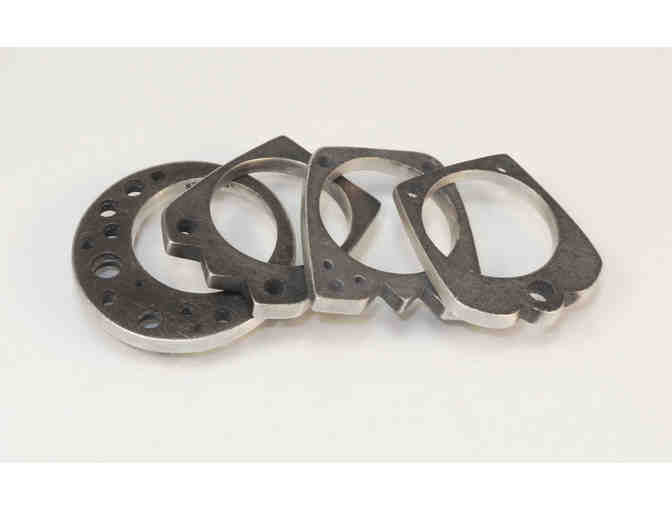 These Modern eco-chic artisan rings have an industrial edge and are handmade out of recycled sterling silver by East Fourth Street Jewelry . They can be dressed up for special occasions or worn everyday. These rings will quickly become your favorite go to for bold, 100% recycled, ethical style.