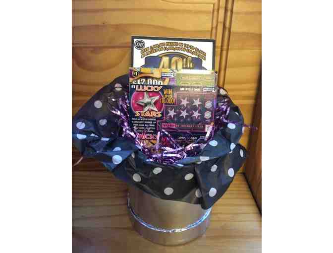 BETC's Third Graders have assembled this basket brimming with scratch card tickets that could win you up to 10 million dollars...and a few chances to win $1, $2, and $5. Luck is on your side tonight!