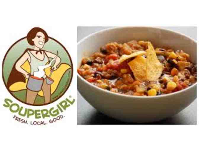 Expires December 31, 2015. Auction item can be redeemed at Soupergirl store. Not valid for use online or at farmers markets or grocery stores were Soupergirl items are sold.