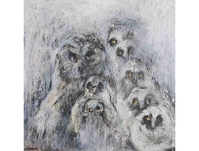 12x12 inches. Oil with mixed media on wood panel.
