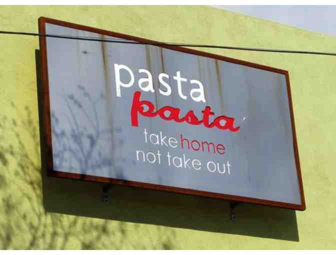 A complete dinner for four from Pasta Pasta in downtown San Mateo. Dinner includes two pastas, two sauces, salad, bread, cheese and a bottle of wine. http://www.pastapastaco.com/