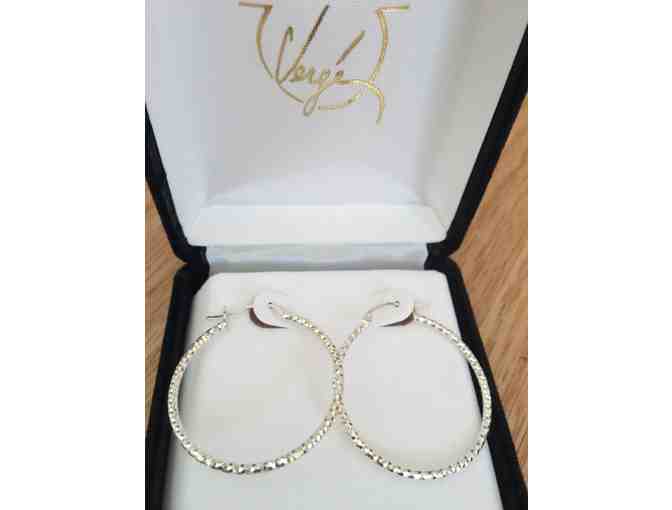 Sterling Silver medium, bright textured hoop earrings ($90 value)