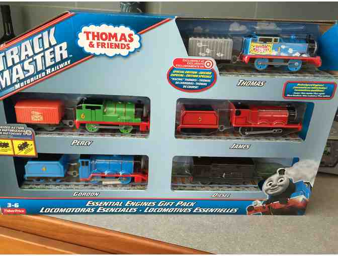TrackMaster™ motorized engines from Fisher-Price have been redesigned so you can experience the Island of Sodor like never before! With enhanced speed and performance, these engines go faster and climb steeper inclines, driving Thomas & Friends™ to greater speeds, taller heights and bigger adventures! This multipack features five of your favorite Thomas & Friends™ engines, including a special edition “racing” Thomas. Flip the switch and watch them race along on another exciting journey. They’re the perfect addition to your collectable, expandable, motorized TrackMaster™ world! Each engine requires 2 AAA batteries.