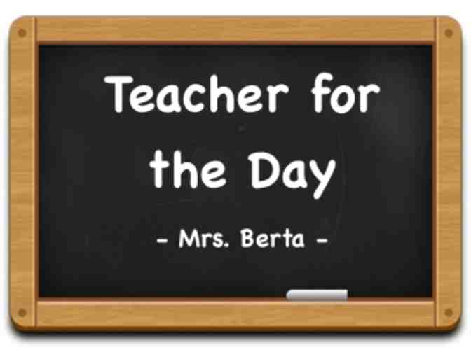 One lucky student in Mrs. Berta's class will be Teacher-for-the-Day on Wednesday, June 3, 2015. The day before, your child and Mrs. Berta will plan the next day's lessons. On the big day, your child will come to school ready to "teach" and enjoy lunch with Mrs. Berta. What a special experience for your first grader to enjoy! This item cannot be shared or duplicated. The winner must contact Ms. Berta.