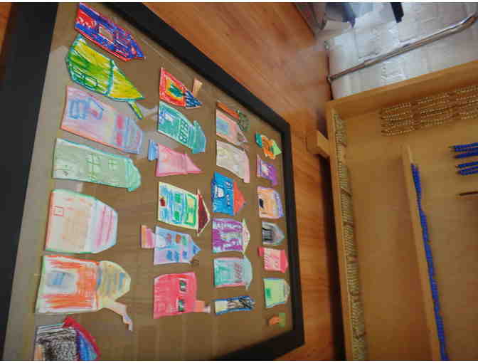 Each student in Ms. Godsoe's class made a hand-drawn Capitol Hill row house and colored the drawing. The drawings were then mounted and arranged in a framed collage.
