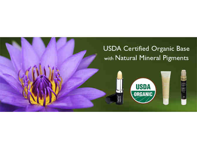 Rich in Organic Hemp Seed Oil and Organic Plant Waxes the makeup products include non-GMO natural Vitamin E as a powerful antioxidant while adding a touch of mineral color. Moisturize and sooth your lips while helping to heal the earth.