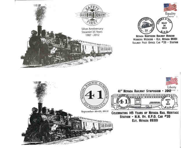Up for auction are two Nevada Northern Railway first day covers. Both were cancelled in Nevada Northern Railway Baggage/Railway Post Office Car #20.