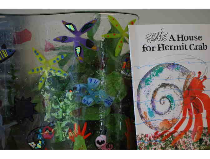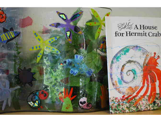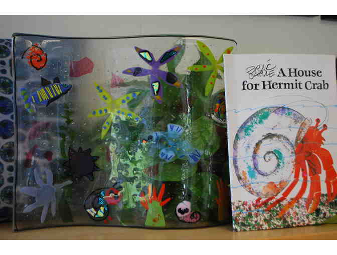 Dive into our ocean wave with this fused and slumped art piece created by Mulberry's 1st grade class-inspired by author and artist Eric Carle's book, A House for Hermit Crab.