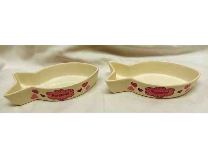 Cute fish food bowls for the pampered kitty. Each bowl is 4 1/2"7 1/2"