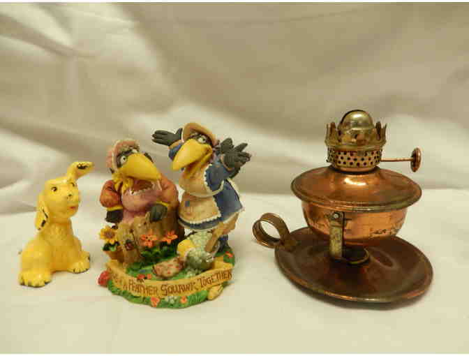 1. Cute 3" pooch;2. little brass lantern (fair to good condition but neat) 4"x5";