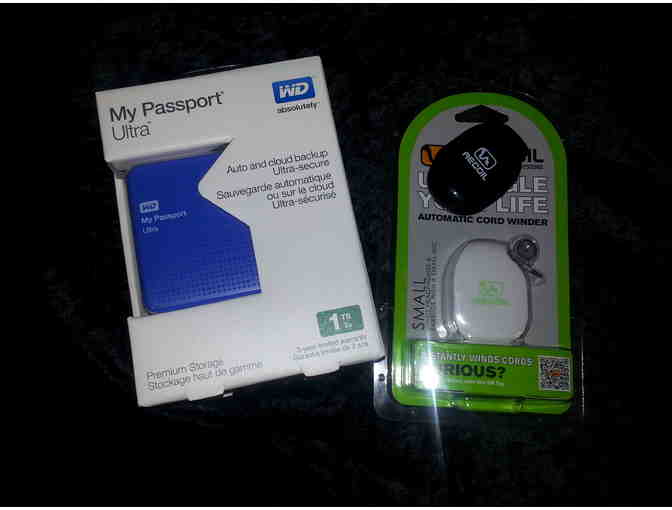 Western Digital 1T Portable Hard Drive plus 2 Recoil Cord Winders