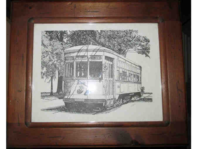 This is a beautiful lithograph of a St Charles Street Car in New Orleans. The print has been matted and very nicley framed in wood.