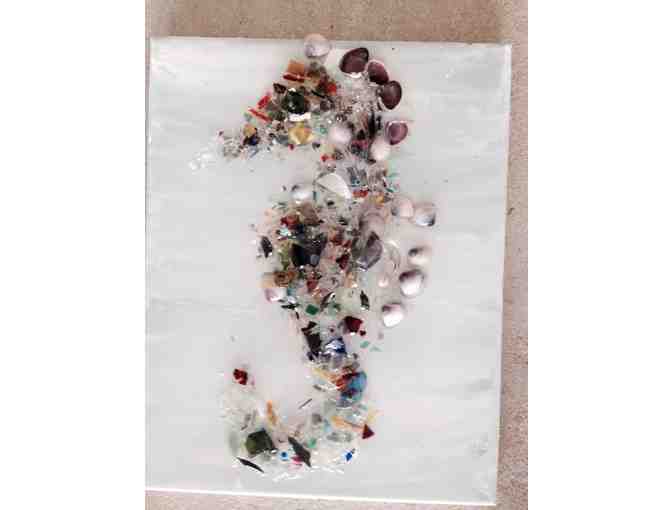 11x14 Seahorse made of glass and resin on canvas.