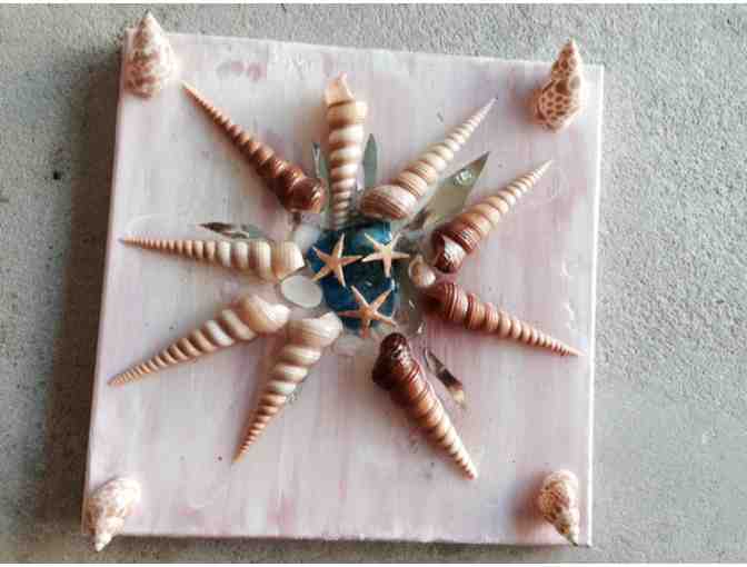 12x12 Seahorse Star made of beautiful seashells and glass on canvas.