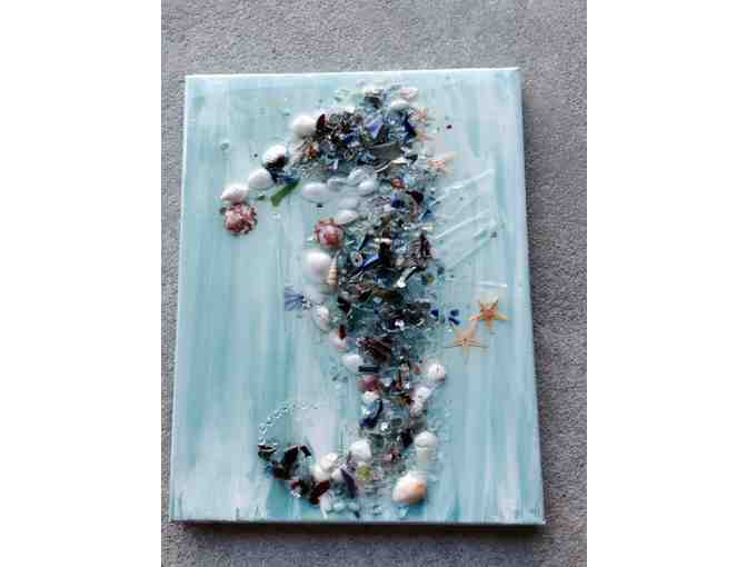 11x14 Seahorse made of glass and resin on canvas, featuring beautiful blues.