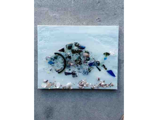 11x14. Fish made of glass and resin on a beautiful blue painted canvas.