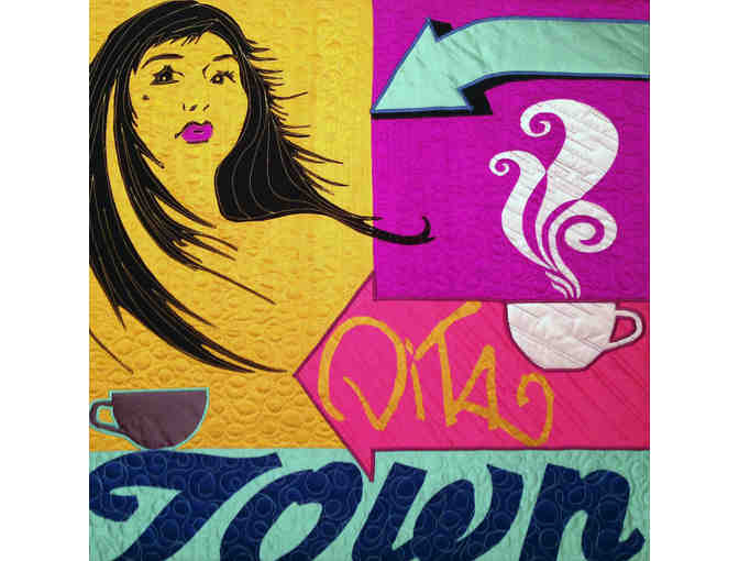 Artist Statement: My art begins on city streets: in alleyways, on the sides of buildings, & sometimes on garbage bins. I am an urban quilter. Inspired by the street art, signage, & graffiti in city neighborhoods, I take digital photos of images I find, sampling & remixing them into urban quilts. I use vibrant silk & black cotton to create quilts that reflect a stream-of-consciousness vision of an urban place that is both real & imagined. The quilts I create are thematically dense, full of sampled layers of meaning. Utilizing the hundreds of digital photographs I take while exploring city streets, I assemble a collage via computer, make Paper patterns, & design quilts of Dupioni silk & cotton. All of the images in my quilts are cut by hand & I quilt by 'drawing' with a sewing machine: moving the fabric under the needle to create intricate patterns. The resulting artworks are tactile postcards of urban environments; modern pop art rendered in fabric. They reflect the experience of city life & serve as an historical record of a neighborhood, in that the places I capture are constantly in a state of flux. My art is of the moment; it occurs on the streets, in public, in city neighborhoods. Though it is quilted rather than drawn or painted, my work is most comparable to that of pop, lowbrow & graffiti artists. I juxtapose hand-drawn images of faces with text, written script, or graffiti, & balance heavier silhouettes with thin line drawings. The images I appropriate & reinterpret float over brightly colored backgrounds. The final works re-imagine the urban landscape & re-invent quilting as a pop art medium.