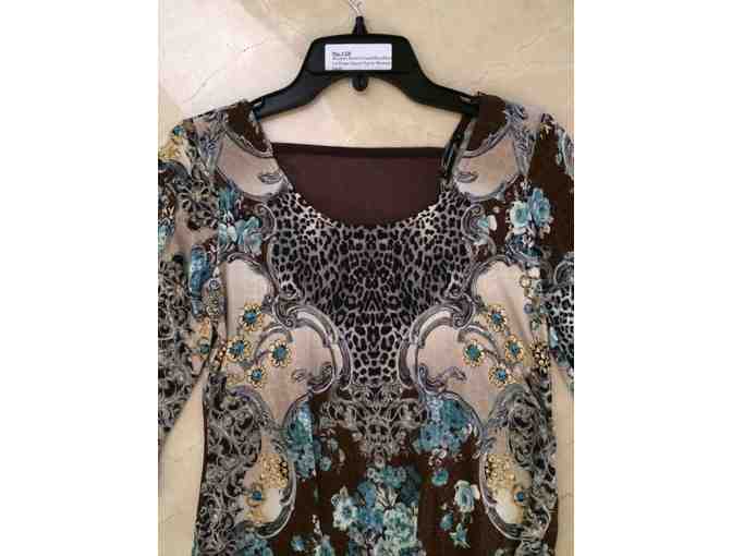 Women's Brown/Cream/Blue/Black 3/4 Flutter Sleeve Top by Mesmerize - Small