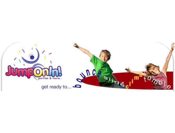 This item includes a gift certificte for a BIG JUMP PARTY at Jump on In at the Hasbrouck Heights, NJ location. The certificate can be redeemed for any party up to 25 children Monday-Friday. Reservations are required. Food or extras are not included. Certificate expires March 1, 2016.