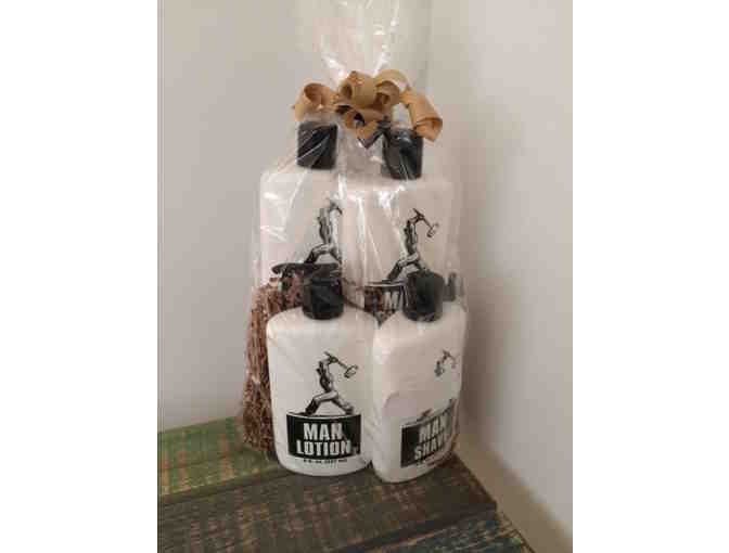 Because Men Need Their Own Stuff! Grab this basket of Man shave, Man Wash, Man Rinse and Man Lotion for your special man! Keep your skin soft and smooth with this basket of men's products.