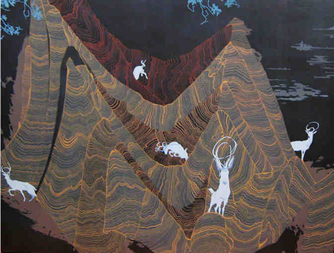 Artist Statement: My recent body of work, titled Junglescape, explores a fascination with the vitality of living organisms in their continuous drama of nature. Flatly painted Acrylic works portray fantastic landscapes in which beautiful life forms co-exist together in a dark, mysterious, & imagined space. A shimmering, chalky brown background creates the sense of the unknown. In these junglescapes, after a long process of evolution, biological forms occupy common ground, thus evoking a natural system in which all life forms are given a sense of equality & peaceful co-existence.