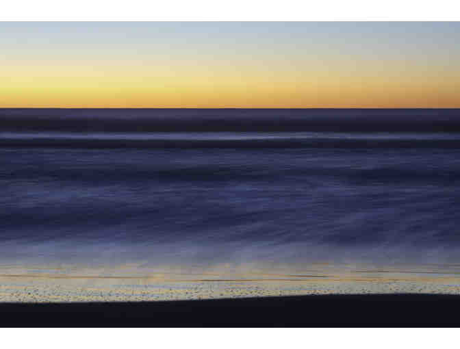 Artist Statement: At the edge of the ocean at the edge of the day, color becomes an abstraction: I wait with camera & tripod. I focus on edges of the surf as the waves retreat on shifting sand. I want to capture the rhythm & motion of the low tide with natural light. The camera sensors record moving color on the digital screen to create a new image over time. The colors shift to blue as the light fades; its dark & I adjust exposures with the histogram. Whether I am capturing evening seascapes, or chasing drifting feathers on shallow ponds, or focusing ethereal reflections of sunlight through blue bottles, I seek images that suggest an object & an atmosphere. With time & motion, I paint with light. I am a San Francisco image maker. A UCSF specialist in microscopy, I combined a lifetime professional career in scientific imaging at UCSF with a lifetime love of personal Photography. My microscopy work has appeared on national science journal covers; my art appears regularly in national & Bay area group shows (Misho Gallery, McKinleys Serenity Shows, 2013 Best of South of Market Artists, Choice 2014, juried by Catherine Clark, two awards & publicity art at Pacific Art League shows). Images from my Ocean series are now part of the permanent collection of the SFPUC building; four have been selected by the SF Art Commission for display in the new SF General Hospital opening in 2015. This is the first C-print made of my ongoing Ocean Beach series. It is a digital photographic image projected onto light-sensitive Paper, chemically developed using a Polielettronica LaserLab printer & printed on Fuji Crystal photographic Paper. Website: www.47thavenuestudio.com