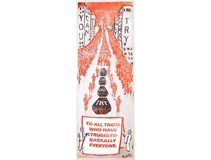 Artist Statement: You Can Only Try is both: a re-make, & an homage to, a wood engraving by the artist Adeline Cross-Ericsson. The subject, taken from Adeline Cross- Ericssons print is a funeral procession down Market Street during 1934 general Strike in San Francisco. In retrospect,this event is thought to have been a landmark for the labor movement in San Francisco.