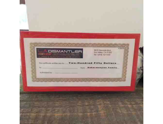 Show your Porsche some love with a $250 gift certificate to LA Dismantler for Porsche, specializing in used Porsche parts. Also included in this package is an LA Dismantler water bottle.