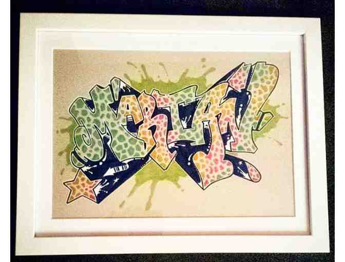 Gift certificate for custom drawn marker on paper name or word -- you choose the word and colors! -- in a graffiti art-style. Framed, matted and ready to hang.