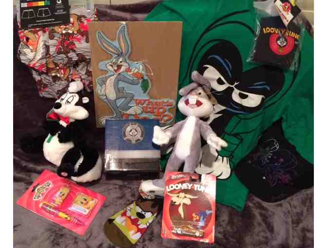 Wow your child with this Looney Tunes gift pack. Includes a stuffed Bugs Bunny and Sylvestor, Tweetie mug, hat, socks and t-shirts (size large).