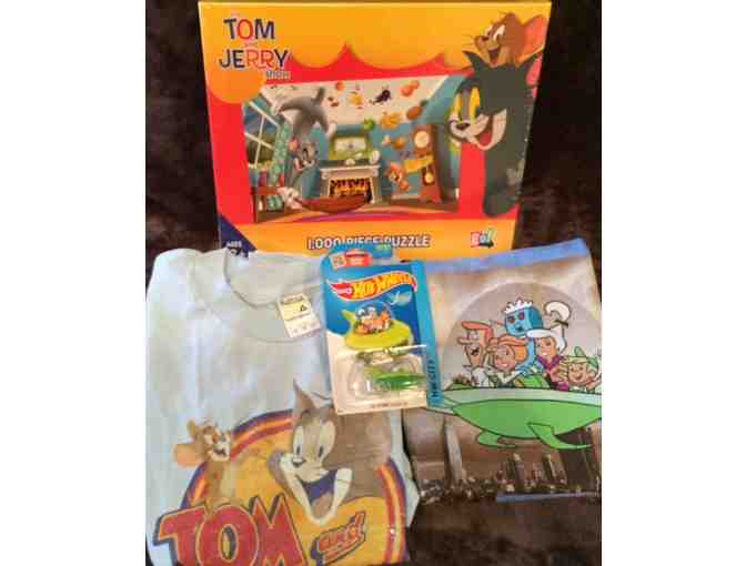This Hanna Barbera pack includes a Tom and Jerry Puzzle, youth large t-shirt and adult medium t-shirt.