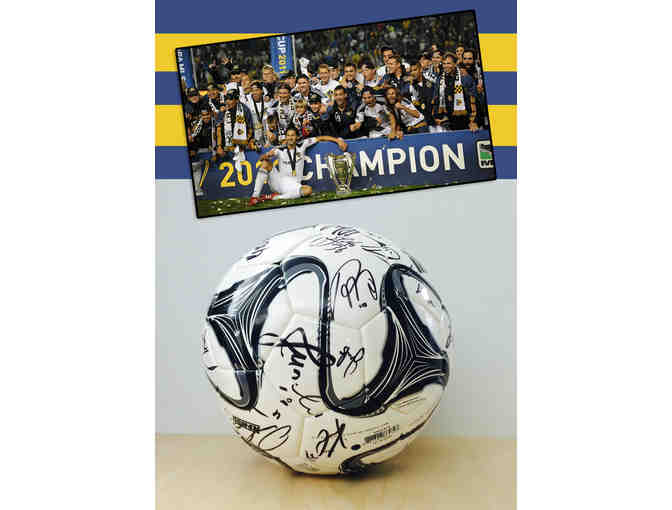MLS Cup 2014 replica match ball autographed by the 2014 MLS Cup champion LA Galaxy roster.