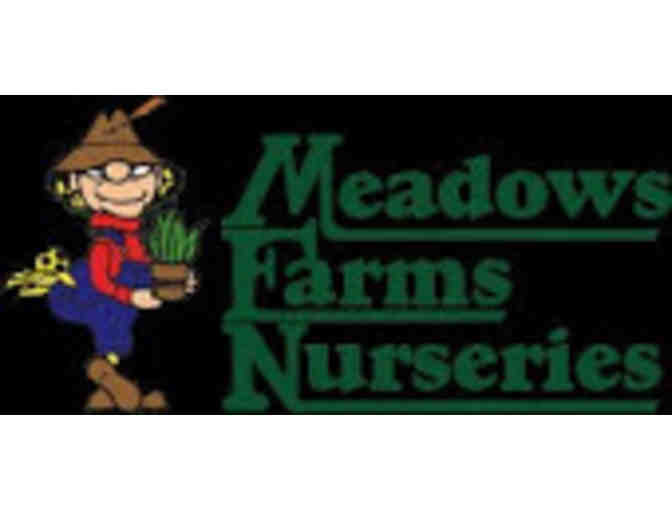 Perk up your garden or planters with this $20 Meadows Farms Nursery Gift Card. Meadows Farms has been rated #1 by Garden Center magazine (January 2014)! Family-owned with 22 retail locations housing 39 designers, Measows Farms is still the only local design-build company offering free landscape planning and a lifetime warranty on plants they install.