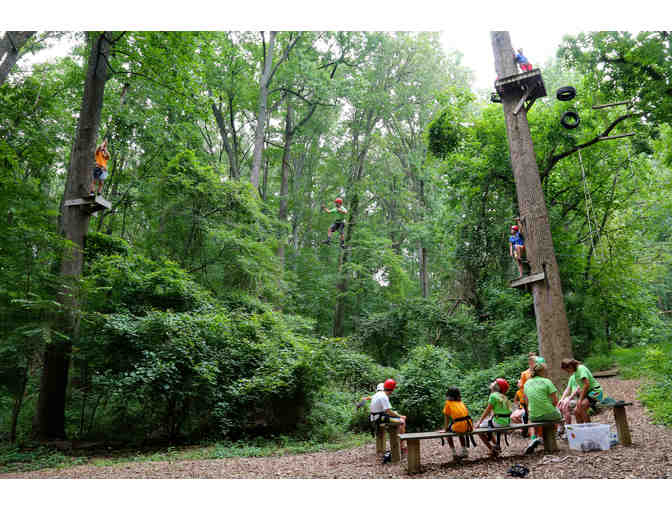 A complete day on the Congressional School Challenge Course just for you and 9 friends! This is a great item for family and friend group activities or an awesome birthday celebration for a lucky child and guests! Test your courage on the Pamper Pole or soar through the air on the Giant Swing or Flying Squirrel. Come traverse the three rope bridges only to end up on a zip platform. Pick the side of the climbing wall that you want to conquer and begin your ascent. Work together to tackle our many challening low course elements as you work up an appetitie for lunch which is also included. Gene Giammittorio, our Assistant Programming Director, will work with you to create your very own personalized program for your special day on the Challenge Course.
