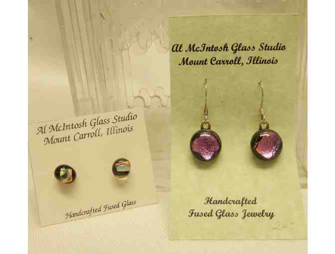Iridescent earrings handcrafted by Al McIntosh Glass Studio