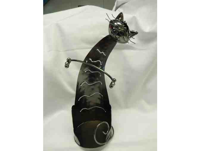 This cute metal cat wine bottle holder was donated by Shirley Greenzweig