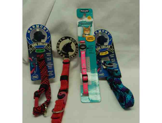 Two 13"-18" dog collars and one 17"-22" dog collar; one Aristocat Safety Break-away cat collar (3/8") Donated by Rhodora Black